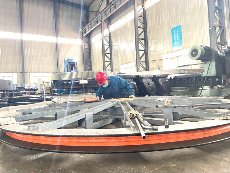 公司φ3.25×4m返修天輪現(xiàn)已進入襯塊筒瓦油管裝配,后續(xù)部件裝配完畢后進入熱裝。